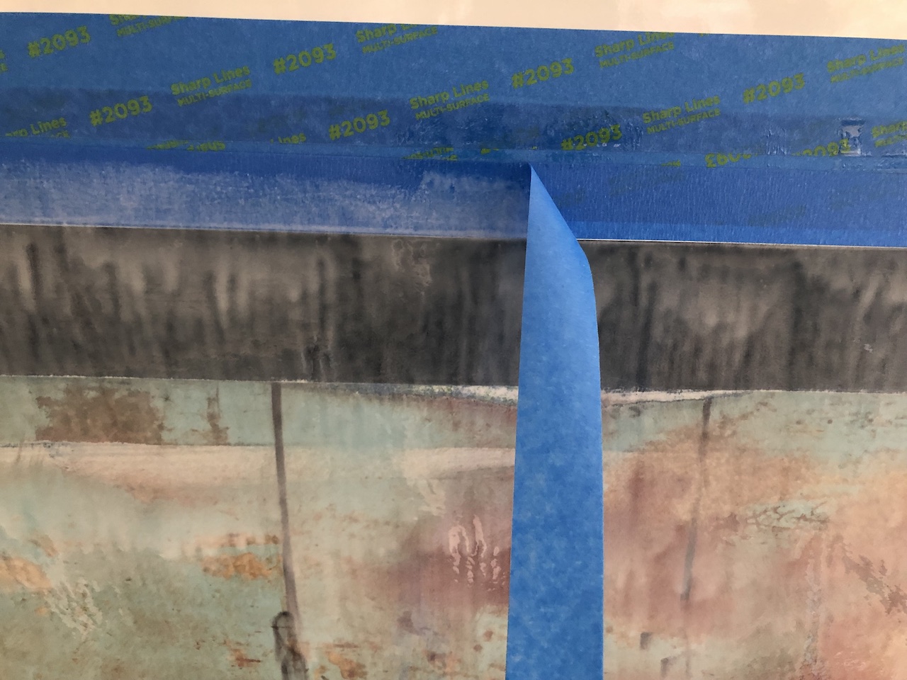 After washing down the bottom with warm, soapy water and a scotch-brite pad to remove the amine blush I sanded, then removed the outer layer of tape.