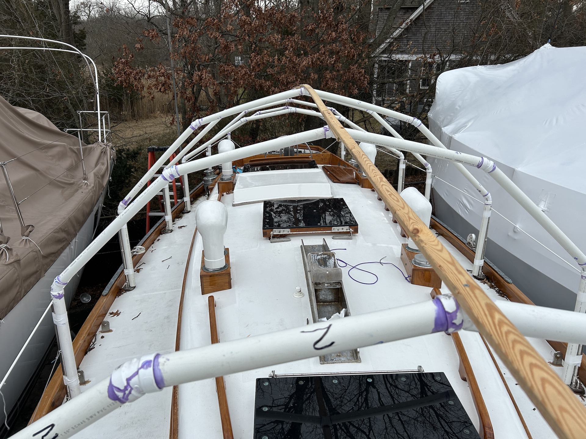 Finally, after the first post-restoration summer, I was happy to put RUCKLE to bed for the winter. I stayed in the water longer than I should have, and took too long to get her covered, and I didn’t keep on top of the brightwork as well as I should have (more on that later). Making a frame and covering her with a tarp, however, gave me my first real time off from RUCKLE in a very long time — time in which I knew there was plenty I needed to do, but I was in no rush to do it.